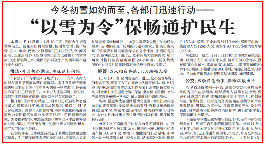 【濟(jì)南日?qǐng)?bào)】“以雪為令” 保暢通護(hù)民生