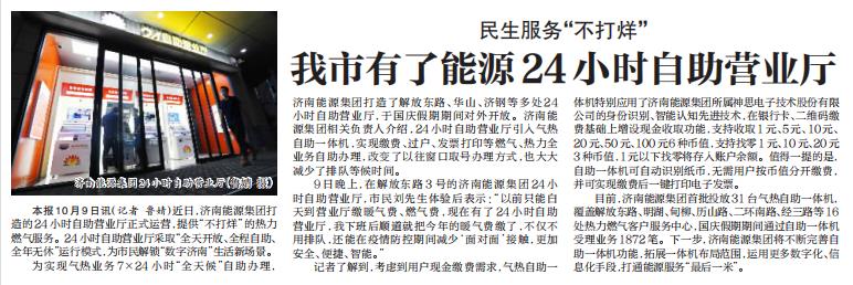 【濟(jì)南日?qǐng)?bào)】民生服務(wù)“不打烊” 我市有了能源24小時(shí)自助營(yíng)業(yè)廳